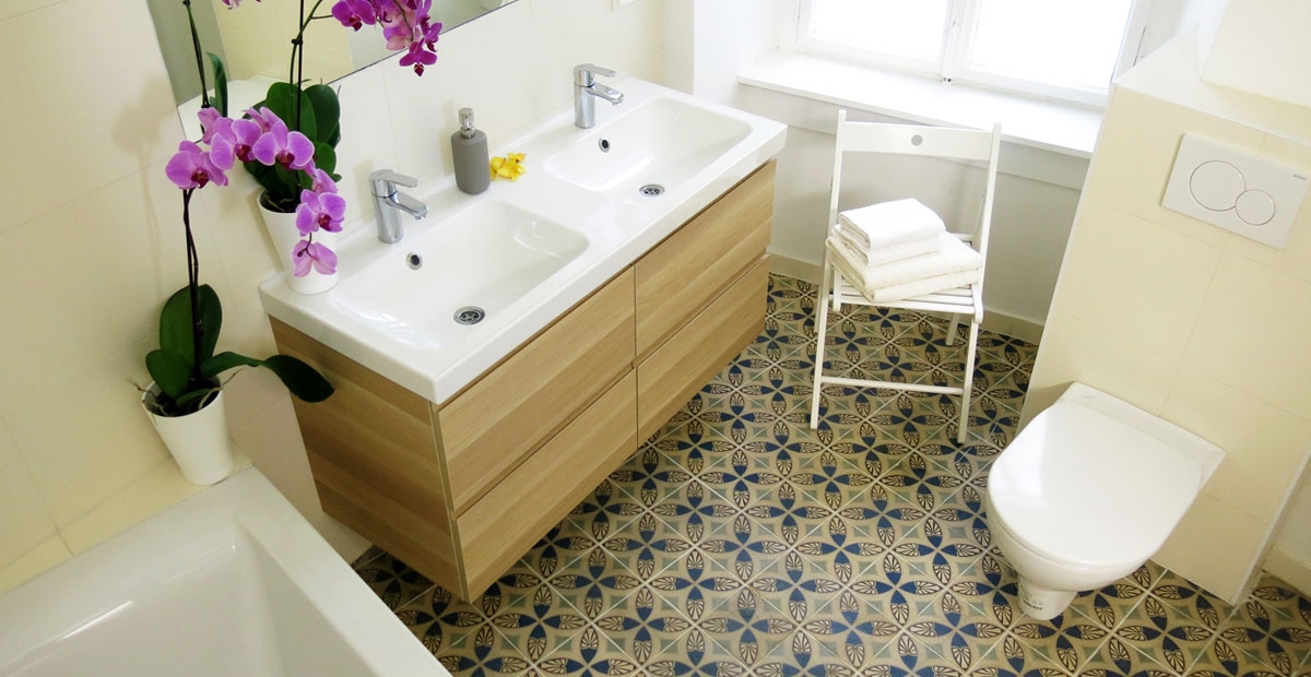 - Waschraum für Sissi: Badewanne, Doppelwaschbecken, Toilette, Habsburgerfliesen